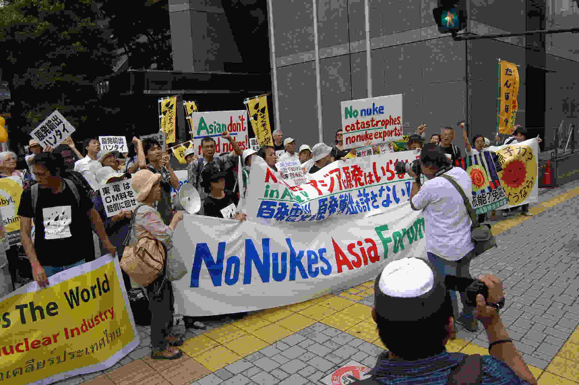 | ノーニュークス・アジアフォーラム通信No.111より NNAF 2011 報告 【日程】 7月30日 福島原発事故について・福島の人たちの経験を聞く 31日 福島県民集会・デモ参加 シンポジウム「アジアへの原発輸出を考える」 8月 1日 NNAF国際会議 2日 国会議員との勉強会 経済産業省・東電との交渉、経産省前・東電前アクション 3日 上関原発反対運動と交流、祝島・田ノ浦へ 4日 原爆資料館見学、平和行進・原水禁大会参加 5日 国際会議「脱原子力にむけた構想力」 「ノーモア・ヒロシマ、ノーモア・フクシマ」アクション(原爆ドーム前) 6日 式典参加、中国電力抗議デモ・座り込み・集会参加 ![]() ![]() 福島、広島でデモに参加 【海外参加者】 タイ:サンティ・C(持続可能性のためのオルタナティブ・エネルギー・プロジェクト)、ソッサイ・S(非核市民ネットワーク)、アピニャ・M、コモル・P、サナン・K、スラック・I、アマリット・S、タンサカ・P インドネシア:デイアン・アブラハム(反核市民連合)、ヌルディン・アミン(ナフダトゥル・ウラマー、中ジャワ州) 中国:ウェン・ボー(太平洋環境・北京) フィリピン:ミッツィー・チャン(非核バタアン運動ネットワーク) インド:S.P.ウダヤクマール(反核運動全国連合) 台湾:林碧堯、徐光蓉、林珮ト、葉慈容(環境保護連盟)、李建畿、黄安調(環境保護連盟台南分会)、李秀容(環境権益促進会)、高成炎(緑党)、林長茂(緑色陣線)、謝欣芸(小学校教師)、崔?欣、陳炯霖(緑色公民行動連盟)、李瓊月、陳慶鍾、張光宗、張岱屏(台湾公共テレビ)、李昭興(海洋大学)、呂秀蓮(前副大統領)ほか 韓国:イ・ホンソク、キム・ボンニョ(エネルギー正義行動)、パク・ジョンウン(参与連帯)、スヨル(社会進歩連帯)、イ・ユジン、シン・グンジョン(グリーン・コリア)、イ・ジウォン(環境運動連合)、キム・ヒョヌ(エネルギー気候政策研究所)、スズキ・アキラ(労働健康連帯)、パク・ジュンギュ(健康と代案)、ウ・ソッキュン(保険医療団体連合)、イ・ヨンフィ、カン・ユンジェ(カトリック大学) NNAF 2011 ダイジェスト ■ 福島原発事故について・福島の人たちの経験を聞く (7月30日) 福島原発事故の経験を過小評価することなく、事故からの教訓をアジアの人々に伝え、各国の運動に活かしてもらえたらという趣旨で、3人の講師をお招きした。 最初に、主催者の一人原子力資料情報室の伴英幸さんから、事故の概要についてご報告いただいた。 続いて「子どもたちを放射能から守る福島ネットワーク」代表の中手聖一さんから、現行の政府の避難政策の問題点および選択的避難政策の必要性についてお話いただいた。福島県内の学校の75.9%が放射線管理区域以上の放射線量を観測したという衝撃の事実や、いまだに避難できていない人が大勢おり、将来大量の被害者を生み出すことが懸念されるため、早急に避難が実現すること、そのための選択的避難区域の設定や学校ごとのサテライト疎開、被害者補償法の制定などの必要性を訴えた。 原発を持ちたい国に対するメッセージはと問われて、「原発と人類は共存できない。体を張ってでも止めなければいけないし、すでに原発を持っている国の人たちは一日でも早く原発を止めよう」と呼びかけた。 農業ジャーナリストの大野和興さんからは、農業関連の実被害と風評被害についてお話いただいた。これまで明らかになった汚染は氷山の一角として、今後さらに被害が拡大するだろうと指摘。また、汚染された食物を消費者に届けてよいものか戸惑いながらも、「百姓は種をまいてこそ百姓」と言う農家の苦悩についてお話いただいた。また、生産者と消費者の共同検査の動きも広がっていることや、農民単独ではなく労働者や若者と一緒に運動を作っていく必要性について語られた。 大熊町から避難中の「ハイロアクション」の大賀あや子さんからは、原発立地が地元社会に与えた影響についてお話いただいた。1960年代に原発計画が浮上した当時、ばら色のエネルギーと喧伝され、リスクは知らされていなかったこと、出稼ぎの多い貧しい地域に建てられたこと、しかし、当初から事故が頻発し迷惑施設として認識されるようになっても、政府の広報や選挙工作による圧力などで原発反対がタブー視されるようになったこと、また交付金は徐々に減っていき財政難になっていく自治体が増え、そこでプルサーマル計画など新たな計画を受け入れることになったという悪循環について語られた。 韓国の参加者から、「原発立地地域の住民のつらさは韓国でも同じ。再生可能エネルギーに転換していく動きは?」など、予定時間をオーバーし、多くの質問が飛び交った。 海外参加者に福島の方々や支援者の生の声を聞いていただけたのは非常に良い機会になったと思う。 (渡辺瑛莉/FoE Japan) ■ 福島県民集会・デモ参加 (7月31日)・・・・割愛、(デモは1700名) ■ シンポジウム「アジアへの原発輸出を考える」(7月31日) 2010年に閣議決定された「新成長戦略」で、原発輸出が国家戦略プロジェクト