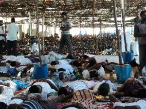 | クダンクラム原発反対運動の現状 8〜9月 (S.P.ウダヤクマールさんからのメール、 People's Movement Against Nuclear Energyの現地報告より) ![]() 福島原発事故から数ヶ月後に、当局がクダンクラム原発の運転開始に向けて加速しようとしたことで、地域住民たちは立ち上がった。当局が避難訓練を実施しようとしたところ、地域の人々の怒りが爆発した。指示では、訓練参加者は鼻と口を覆って最も近い建物に逃げ込んでドアを閉めることになっていた。 タミルナードゥ州政府は、原発から半径5km圏内は無人地帯にすると明言しているのだが、クダンクラムの当局は非公式に、立ち退きを強制される人はいないと述べている。このような二枚舌に振り回され、真実が注意深く隠される中、住民たちは心が休まるときがなかったのだ。 8月11日、クダンクラムの人々が地域のカトリック教会に集まって、原発に反対するデモを行った。地域の活動家から電話があり、すぐにクダンクラムに来てほしいといわれた。私は日本から帰国したばかりだったが、かけつけた。 私たちは、デモが暴動に発展したり、州政府の暴力によってデモが制圧されたりするところを見たくはなかった。何人かの酔っ払いや、警察のスパイ、これまでにないほどの数の機動隊がいたが、私たちは、可能な限り非暴力のデモを行った。 デモが行われている途中に私は、近隣の漁村イディンタカライ村で、人々が教会の鐘を鳴らし、教区の神父の家に人々が集結していると聞いた。私たちも、話し合いに招待された。私たちは、若者のグループがハンガーストライキを実施できるよう手助けした。人々は、漁のボイコット、子どもたちの集団休校、店や施設の閉鎖、黒い旗を掲げる、身分証明書を政府に返還するなどのさまざまな行動について話し合った。 14日、クタンクリ、クダンクラム、イディンタカライなどの村々を訪問して、これからの計画を相談した。 15日(独立記念日)、クダンクラム、ヴィジャヤパティ、クタンクリ、レヴィンギプラムなどの村議会で、クダンクラム原発の閉鎖を求める決議を採択した。 16日、10000人以上の人々が参加し、ハンガーストライキを開始した。運動を継続するために執行委員会、財政委員会、法律チームなどを結成した。 17日、警察は前夜に許可を取り消すといったが、私たちはかまわずに行動を続けた。私たちは警察が平和的なデモを武力で制圧しようとしていると聞き、それに反対するよう当局に申し入れた。当局は私たちに対し、避難訓練を中止するのですべてのデモをやめるように提案してきた。私たちは9月7日までは大規模なデモをしないという合意に達した。 しかし8月27日になると、「9月中にクダンクラム原発の運転を開始する」とDAE(原子力庁)が発表したのだ。これによって私たちと当局との合意は無効となったので、8月30日、執行委員会はイディンタカライで相談会を持ち、闘争を再開することにした。 9月10日、多くの活動家たちがイディンタカライ村に集まり、11日からのハンガーストライキの準備を始めた。午後3時ごろ、私たちはクダンクラム村で警察官たちが活動家を逮捕しているとの一報を受けた。500人ほどの女性たちが道路を封鎖し、逮捕された人々の即時釈放を要求していた。その後、警官たちの態度が軟化し、女性たちも道路封鎖を解いた。しかし、510人が起訴された。あまりにも多くの人々が逮捕され法廷に持ち込まれたので、この出来事はマスコミでも大きく報じられた。 9月11日、福島原発事故の悪夢、警察による妨害、クダンクラム原発を9月中に稼動させるというDAE長官の発表を考慮し、私たちは無期限ハンストを開始した。私たちのハンストは、完全に非暴力のものとすること、ガンジーの精神と実践に従うことをはっきりと確認しあった。 ティルネルベリやカニャクマリなどの地域から、イディンタカライのセント・ルーデス教会の前に7000人が集結した。反原発の活動家がパフォーマンスを行い、社会的な啓発の歌を歌い、スピーチを行った。地方議員であるマイケル・ラヤパン氏が現れ、連帯を表明した。 参加者全員がハンストを見守り、今日の締めくくりとしてハンストに参加している人々の名前を皆に知らせた。無期限ハンストをしているのは127人、そのうち女性が20人、身体障害者が4人、神父が4人、シスターが3人。彼らに関してプロフィールや既往歴など必要な記録が集められた。 5時にはいったん解散し、無期限ハンストの参加者たちは教会のポーチ前で眠った。連帯の意を表明するために、そしてハンスト参加者の身の安全のために、数百人もの地域の人々が彼らをとり囲むようにして眠りについた。 9月12日、9時になると、タミルナードゥ州南部のあちこちから人々が集まり始めた。11時ごろには、人々の数は1万5千人に膨れ上がった。 この教区の司教も朝から私たちに合流し、一日を共に過ごした。彼もハンストに加わった。そのほかにも、著明な宗教指導者が参加して、クダ