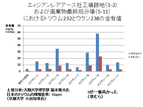 | マレーシア・レアアース製錬工場の環境影響 (後篇):エィジアン・レアアース(ARE)社事件のその後 和田喜彦(同志社大学経済学部) エィジアン・レアアース(ARE)社事件とは、マレーシア・ペラ州イポー郊外ブキメラ村周辺において1970年代から1980年代にかけてモナザイト(モナズ石)からイットリウムなどのレアアース(希土類)金属を抽出する工程から発生した放射性トリウム(Th)などによる環境汚染のことである。 ARE社は、日本の三菱化成が35 %出資、1979年にマレーシアで設立された合弁会社である(なお、三菱化成は、現在「三菱化学」となっている。1994年10月、三菱化成と三菱油化が合併し、「三菱化学」が発足した)。 AREの立地場所は、首都クアラルンプールから約200km北方にあるイポー郊外のブキメラ村である。1973年にARE社の前身「マレーシア・レアアース」社が設立され、1982年7月、テレビの赤色発光体などに使用されるイットリウムなどのレアアースをモナザイトなどの原料から精製・抽出する操業を開始した。この工場で生産されたレアアースが100%日本に輸出されていた。 問題の背景としては、 1968年の日本の原子炉等規制法改正により、放射性廃棄物の投棄や保管には厳重な管理が必要となったことがある。これに伴い、モナザイトからレアアースを抽出する工程は日本から海外に生産拠点を移動させていった(「公害輸出」の典型例とされる)。なお、1972年にはこの工程は日本から姿を消した(小島1999年)。 精製・抽出の過程でトリウム232などの放射性物質が発生する。トリウム232は半減期141億年、アルファ線を出す有害物質だ。工場はトリウムを含む残土の保管施設を持たず、工場の裏にあった池や地面に警告表示もなしにそれを野積み状態にしていた。 その結果、工場周辺では深刻な放射能汚染が発生した。投棄場の外周で自然放射線の約50倍の値を検出(地上1m)(1984年)、不法投棄された場所では、通常の730倍の線量も計測されている(1986年、市川定夫・ロザリー・バーテルらが測定)(市川2005年)。 不適切極まりない廃棄物管理の結果、住民に健康被害の症状があらわれた。マレーシア平均の3倍の異常出産、40倍以上の発生率で子どもたちが白血病や癌に罹患するという痛ましい事態が発生したのだ。また、子どもたちの白血球数の減少という形でもあらわれた(下グラフ)。米国の核実験で被曝したマーシャル諸島の子どもたちの白血球減少数と似た数値を示したのである(T. Jayabalan 医師の調査による。小島1992年)。 ![]() 住民はARE社の操業停止を求めて抗議活動を展開。1985年にはイポー高等裁判所に提訴。高裁は仮処分として操業停止命令を出し、操業を一時止させた。その後ARE社は廃棄物の仮備蓄場を建設したため、マレーシア原子力許可委員会から操業の再開を認められた。ところが仮備蓄場は穴を掘っただけの粗末なものであったため、住民は抗議行動を再開。1992年にはイポー高裁で、操業中止命令。住民側の全面勝訴となった。しかし、1993年にマレーシア最高裁の上告審では操業を合法として認める逆転判決が出された。 ARE社は1994年1月、「中国から輸入するほうが経済的」として、撤退。工場は閉鎖され、放射性トリウム14%を含むトリウム廃棄物が放置された。 ARE工場の解体と廃棄物保管場所の設置と除染作業が行われたのは2003年から2005年にかけて、操業停止から9年もたってからであった。現在、従来の地上の保管場所が古くなり、放射性廃棄物を新しい地下保管場所に移転中である。 三菱化学も州政府も、現在に至るまで、被害者の病気とARE社の排出した汚染物質との因果関係を認めていない。見舞金と称して、月いくらかの生活費補助を出しているのみである。ただ、廃棄物の管理・保管、見舞金の支出には莫大な費用がかかっており、操業収益を上回るコスト負担が三菱化学の肩にのしかかっているという。 ちなみに、三菱化成(現、三菱化学)は、四日市ぜんそくの加害企業のひとつである。1972年に、三菱化成は四日市工場の建設前に、環境影響評価を行わなかった過失があったとする判決を受けた。そして、ぜんそく患者に対し、損害賠償を支払うことが命じられた。三菱化成は、四日市で得た教訓をマレーシアでまったく活かしていなかったのだ(小島1990年)。 ![]() 廃棄物の最終処分場(南方向から見る) 筆者は、2012年11月イポーに赴き、30年を経てもなお傷跡が残っているブキメラ村を訪ねた。28年前にARE社の従業員として工場施設の拡張工事に当たっていた女性に出会った。彼女の名は、ライ・クアンさん。当時、工場の拡張工事が始まったころ彼女は子どもをお腹に宿していた。しばらくして生まれたレオン君は先天性の白内障、心臓に穴があり小脳症という三重の重い障がいを持っていた。レオンさんは、何とか生き延びたが、2012年春、28歳の若さで亡くなっている。「ロザリー・バーテル医師が、彼がまだ幼い頃訪問して診察してくださったが、その時先生は、『お子さんは、30歳まで生き延びることが