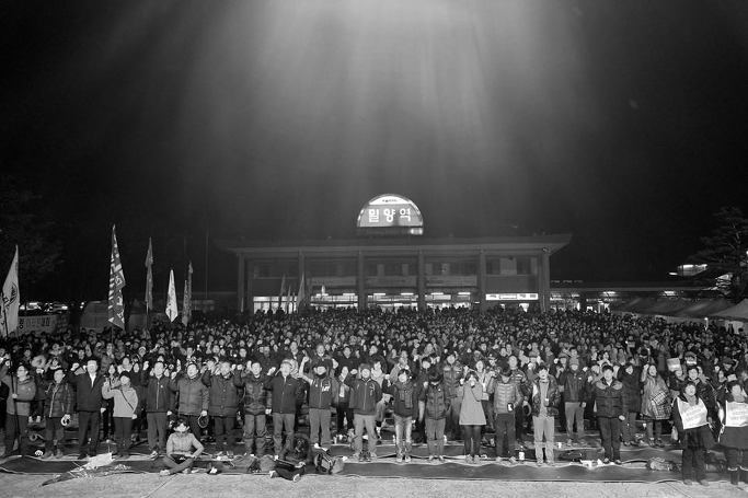 | 「亡くなったお二人の魂がこの地を離れられぬ。 国が罪なく力なき国民を苦しめてはならない」 韓国『脱核新聞』2014年1月号 パク・ヘリョン通信員 亡くなったイ・チウさんとユ・ハンスクさんの魂が、まだ離れられずにいるミリャン(密陽)を訪ねた。 サンドン面ヨンフェ村は30世帯あまりの小さな村。コ・ヂュンギル、ク・ミヒョンさん夫婦は40年以上の教員生活を終えてこの村に移り住んだ。ささやかな田舎暮らしに背を向け送電塔反対闘争の最前線に立つク・ミヒョンさんにお話しをうかがった。 ![]() ● 韓電に騙された! ク・ミヒョンさんは今年で64歳。夫のコ・ヂュンギルさんとともに2007年にヨンフェ村に移り住んだ。幼いころから病弱で、50歳を過ぎてからは日常生活に支障をきたすほどだったという。コさんは、そんなクさんを見かねて、週末になると土地を探して回った。1999年のある日、たまたま夫に連れられてやってきたのがヨンフェ村だった。春の日ざしがこの上なく温かかった。 「村のあちこちに咲いていたアツモリソウが今でも忘れられません。草の一本、花の一輪まですべてが美しかった。ミリャンは地名にもあるように日当たりがよくて、日ざしが温かだし風もおだやか。山並もきれいで。誰もが一度来たら自然と『いいなぁ』と言ってしまうようなところなんです」 夫の定年後すぐに移り住んだ。当時の体重はわずか38kg。農業を生業としない者にとって、ここは癒しの場であり魂のやすらぐ所だった。好きな絵を描いたり、石をひとつひとつ運んで庭作りに励んだり。ゆとりある時間を過ごす中で、数十年来病弱だった体が嘘のように元気になった。 「村の裏山の左と右に鉄塔が立って、村が送電線の下になってしまう。頭の上に超高圧送電線を頂いて暮らさなければならないということ。私たちが村に来たころ、村の人から聞いた話では、韓電(韓国電力公社)は、『鉄塔は村からほとんど見えないよう裏山の方に迂回させるから、まったく影響はない』と言っていたと。みんな韓電に騙されて、はじめは同意書に署名してしまったんです」 2005年の住民説明会の後、ヨンフェ村の住民は、被害が出ないようにするという韓電の言葉を信じて同意書にサインした。 「2011年に、ヘリが村の周囲を飛び回るようになったんです。夫が山に登ってみたら、村のすぐ近くだと。それで騙されたと気づいたんです」 30世帯あまりの小さな村には公民館もない。村人が集まって何かをした経験もないということで、村人たちは騙されたとわかっても諦めて考えないようにした。当初、他の村の住民は、大きな被害が出るにもかかわらずなかなか立ち上がらないヨンフェ村を非難した。 しかし、イ・チウさんの自殺をきっかけに、村人たちが集まりはじめた。動画を見て送電線の真実を詳しく知り、韓電に対して、以前の同意は無効との立場を正式に伝えた。以降、ヨンフェ村には「765kV送電塔反対対策委員会」が結成され、韓電と公権力に立ち向かっている。 ● 自らの命と財産を守る国民を、「権力にたてつくとはふとどき千万」と、 見せしめにするのが国家だ クさんは、昨年10月に再開された工事が以前とは違う様相を見せているという。 「5月に投入された警察は500人。でも10月は3000人でした。あたりを埋め尽くす黒い警察の群れを見て、こう思ったんです。ミリャン住民が権力にたてついていると考えて見せしめにしようというんだな。ふとどきな連中だって。だから警察が積極的に韓電の味方をするんです」 ![]() 排除される座り込み(2013年5月) 3000人を超える公権力が、年老いた住民たちを、まるで暴動を鎮圧するように手荒に扱う様を見て、クさんは国民を敵視する政府の意思を知ったという。 「国会で、ある国会議員が、『国民が自分の財産と命を守るのは正当な行為ではないのか』と述べました。私は韓電とミリャン住民のどちらが正当かが重要だと思うんです。国が国民の命と財産を保護してくれないから、私たち自らが守る。私たちこそ正当ってことです」 昨年5月に韓電が合意もなく工事を再開するや、ヨンフェ村のある住民がトラクターで工事進入路を塞いだ。このとき警官がケガをしたとして、警察はその住民を特殊公務執行妨害罪で45日間拘束した。 「その時の心情は言い尽くせません。私が捕まった方がよっぽど気楽でしたよ。いちばんの農繁期なのに、正当な要求をする国民を一月半も拘束するなんて。こんなに悔しいことがどこにあるって言うんですか。住民を脅してるんですよ。正当に抗議するおばあさんたちを担ぎ上げて追っ払ったり、動けないように拘束したりしたんですから」 ![]() 排除される座り込み(2013年5月) ● ミリャンに同意があるとすれば、 銃を突きつけて取り付けた同意とかわらない 12月30日、国会の法制司法委員会は、送電塔建設予定地の財産補償範囲拡大などの内容を盛り込んだ「送・変電設備周辺地域の補償および支援に関する法律」(略称「送周法」、別名「ミ