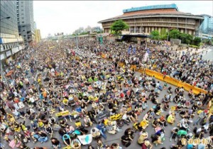 ![]() 5万人が台北駅前を占拠 馬英九政権 「第四原発、稼動・工事凍結」を宣言 (自由時報・蘋果日報の記事より翻訳・構成) 陳威志 第四原発の廃止を訴えるため、台湾の苦難の歴史のシンボルである林義雄弁護士が、死を覚悟して、4月22日に無期限断食を開始した。 それに呼応する形で、全国126団体による「原発廃止全国ネットワーク(全国廃核平台)」は動き出した。26日、大勢の市民が総統府前に座り込んだ。その場で、翌日のデモ行進とともに道路占拠を行なうことが予告された。 27日午後、「原発を終わらせよう、主権を市民に返せ(終結核電、還權於民)」と叫びながら、デモ隊は、総統府前の凱達格蘭大道から出発した。主催側の発表では、約5万人の参加という。 忠孝西路の台北駅に面したエリアに着いたデモ隊は、予告通り、道路占拠を図り、人数の勢いで警察の封鎖を突破し、忠孝西路の全車道が占拠されることになった。激動の事態展開のなか、馬英九政権は妥協し、第四原発の「稼動・工事凍結」を発表した。 ● 第四原発を終わらせよう! 主権を市民に返せ! 「占拠」の幕は27日朝から開いた。総統府前で一夜を過ごした市民たちは、馬英九政権の民意無視・独断専行に対抗する意味で、「参加討議型民主主義」のやり方で、第四原発の行方について議論した。 ![]() その結果を集約した「核四(第四原発)市民意見書」を発表した後、15時20分、林義雄さんの呼びかけで1994年に設立されたグループ「人民作主行動」のメンバーを先頭に、デモ行進が景福門からスタートした。デモ隊は予定どおり、中山南路、常徳街、公園路、襄陽路、舘前路を歩いて、16時に、忠孝西路に着いた。行進中、「ぐずぐずするな、直ちに第四原発を中止しろ!」という市民の怒り声は、絶えなかった。 参加者が続々と忠孝西路に寄り集まったとき、街宣車から「原発を終わらせよう、主権を市民に返せ」という暗示的な指示が出された。それを聞いて、もともと台北駅前の三越百貨店の手前にいた市民たちが、道路分離柵を乗り越え、向かい側の車道に突入した。市民たちはすぐさま、事前に用意した折り畳み式の椅子を出して座ったり、横になったりした。市民たちは一気に押し寄せ、交通が遮断され、忠孝西路全車道(8車線)の占拠が果たされた。そのとき、台北市警察局による警備体制はわずか1800人だった。 忠孝西路と公園路の交差点にいた警察は、占拠の人々に対して、「集会法に違反。直ちに撤収しないと逮捕する」という札を4回も出したが、人数の差があまりにも大きいため、16時半に機動隊は撤収した。そのとき、忠孝西路の舘前路との交差したエリアから、中山南路との交差のエリアまでが、市民に埋め尽くされたのだ。 ![]() ● 原発事故の怖さを訴えてダイイン 16時半ごろ、原発事故通報サイレンのような音が鳴り、参加者たちが次々と道路で横になって「緊急時演習」を行なった。高周波音によって、原発事故が発生したときの恐怖を人々に感じさせ、現場は静まり返った。 交通への影響を承知したうえで、あえてこのような行動をとることには、いままで馬英九政権が、何度も市民との約束を破り、民意を無視してきたという背景がある。 緑色公民行動連盟事務局長の崔愫欣(チェスーシン)は、「林義雄さんの命が少しずつ衰えてゆき、われわれ市民の怒りもどんどん増えていって、もう我慢の限界だ! 権力を奪い返そうじゃないか!」と、激しく当局を非難した。 ● 第四原発建設・稼動は きっぱり中止すべき 事態が厳しくなっていったなか、27日の夕方、地方自治体首長との討論のあと、馬英九総統は譲歩した姿勢を見せることになった。総統府は以下の声明を出した。「第四原発1号機を稼動させない。安全審査を行ない、その後しばらく凍結する。2号機は全面工事停止。第四原発の稼動に関しては、国民投票で決める。また電力供給に支障を与えないように、行政院は全国エネルギー会議を開く」 しかし、原発廃止全国ネットワークは「受け入れがたい」という態度を表明し、行政院に「第四原発建設・稼動の『中止』をただちに命じろ」と断固要求した。 占拠現場は、夜の忠孝西路に、8000人が残っていた。 ● 28日未明、強制排除が始まった 連日の行動でやはり疲労困憊か。零時を越えると、人数は2000人に減った。そんななか、排除に向けて警察が動き出した。1800名の機動隊が、28日未明から、40回ほど放水銃を発射しながら、忠孝西路と館前路との交差点から、中山南路との交差点へと攻めてきた。 放水を受けた人々は倒れて、機動隊がすぐさま人を排除していくが、必死に反抗する市民たちもいた。いっぽう、路上から運び出された多くの市民が、暴力に負けず、また現場に戻って座る光景も見受けられた。放水、排除、対抗のくり返しだ。 排除されたのは市民たちだけではなかった。忠孝西路の歩道橋まで突入できた機動隊は、5時ころ、歩道橋の上にいた記者らを追い払い始めた。拒否しようとしたapple dailyの張
