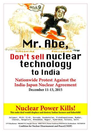 | ノーニュークス・アジアフォーラム通信No.137より 日印原子力協定「原則合意」を許さない! ![]() 12月11~13日、各地で抗議行動。ジャイタプール、ミティヴィルディ、コヴァーダ、クダンクラムなどの原発予定地や原発現地、デリー、ムンバイ、チェンナイ、コルカタ、バンガロールなどの大都市。他に、イスタンブール、東京、ロンドン、ニューヨークや、オーストラリアなどでも。 ![]() 12月12日、原発予定地ジャイタプールで日印原子力協定への抗議行動が行なわれた。約2000人が結集し、自発的に逮捕される非暴力直接行動によって、1000人以上が逮捕された。とくに女性たちの存在感が大きく、皆が「安倍は帰れ!」のスローガンを叫んだ。演説しているのは、先月来日し「原発を輸出しないで」と訴えたヴァイシャリさん 共同声明:日印原子力協力協定の「原則合意」に断固抗議する インドを訪問した安倍晋三首相は、2015年12月12日にインド政府のナレンドラ・モディー首相との首脳会談後、共同声明を発表した。 懸念された「日印原子力協力協定の調印」には至らずとも、「協定は合意に達した」ことが明言された。しかし、日本政府側が求めて続けてきたとされる「再核実験時における協力停止」や「使用済み核燃料の再処理容認」問題などについては、何らの明記もない。 インドは、核拡散防止条約(NPT)に加盟しないまま2度の核実験を続け、さらに核兵器増産をめざしている。今回の実質合意により、ヒロシマ・ナガサキでの被爆を経験した日本が、あたかもインドを正式な六番目の「核兵器国」として容認することになる。それは、戦後70年一貫して「核兵器廃絶」を外交の柱とした日本が、NPT体制を崩壊させる重大な政策転換である。 基本合意が、核廃絶へ向かう国際社会での多くの人びとの努力を踏みにじることは明らかである。安倍総理の訪印直前の広島市長と長崎市長の連名による「協定交渉の中止要請」も完全に無視され、広島県選出の岸田外相の責任は重大である。 また、東京電力福島第一原発の事故が収束しておらず、多くの被害者が未だに苦しんでいるさなかに、他国への原発輸出を拡大して原発産業の延命を図ろうという姿勢は、きわめて非倫理的である。このような日本による国をあげての原発輸出政策には、国際的に厳しい批判が続いている。インドでは、政府による厳しい弾圧にもかかわらず、原発計画に対して地元住民が幅広い反対運動を展開している。 今回の首脳会談と同時に、日本各地だけでなく、インドでは首都デリーと原発建設計画予定各地の住民、ロンドン、ニューヨークなどでも大規模な反対運動、そして国際署名が展開された。 世界の人びとは日本に対して、「インドへ原発を売るな!どこにも売るな!」と呼び続けている。 安倍政権の金儲けのための「原発輸出」と「核不拡散政策の転換」について、私たちは強く抗議する。そして、正式調印阻止へ向けて今後も闘うことを表明する。 2015年12月14日 コアネット、ノーニュークス・アジアフォーラム・ジャパン、ピースボート、原子力資料情報室、ピースデポ 広島・長崎両市長の要請文 平成27年12月9日 内閣総理大臣 安倍 晋三 様 外務大臣 岸田 文雄 様 広島市長 松井 一實 長崎市長 田上 富久 インドとの原子力協定交渉の中止について(要請) 今週末に予定される安倍総理のインド訪問において、我が国とインドとの間での原子力協定について、妥結に向けた動きがあるとの報道がなされています。 経済分野や安全保障分野において、インドとの良好な関係を構築することは重要であることは言うまでもありません。しかし、この協定は、核物質や原子力関連技術・資機材の核兵器開発への転用の懸念を生じさせるものであり、広島・長崎の被爆者を始めとする多くの市民が核兵器を廃絶する上での障害となりかねないものと考えています。また、我が国は、NPT(核不拡散条約)非締約国に対して非核兵器国として早期かつ無条件での加入を要請している立場にありながら、この協定についての交渉を行うならば、自らがNPT体制の空洞化を招くことになりかねません。 日本政府におかれては、これまでも被爆地から繰り返し行ってきた協定締結に向けた交渉中止の要請を今一度、想起していただき、ヒロシマ・ナガサキの思いを真摯に受け止め、交渉を中止するよう強く要請します。 日印原子力協定に反対する国際アピール https://goo.gl/1uO7Yn 日本国総理大臣 安倍晋三様 私たちは、貴方のニューデリー訪問時に署名されると伝えられる、日印原子力協力協定の締結に強く反対します。 この協定を締結すれば、これまで核廃絶を繰り返し提唱してきた被爆国日本が、核不拡散条約や包括的核実験禁止条約に加盟する意思もなく、核軍拡をつづけるインドに、原発・原子力技術を輸出できることになります。今年は被爆70年にあたりますが、核不拡散条約運用検討会議は最終文書に合意すること無く終了しました。このような状況下で、この協