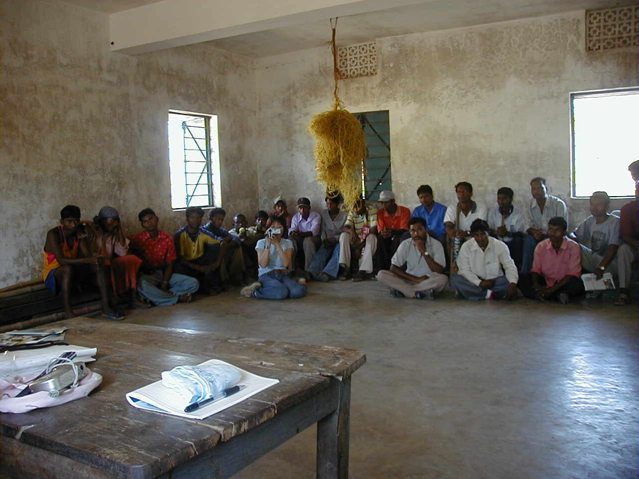 子どもたちのためのシェルター建設予定地に行く。すでに十数名の住民たちが待ってくれていた。シェルターの建設自体は、一昨年冬に来た時と比べてほとんど進んでいなかった。大きな樹の木陰に車座になって話を始める。マスコミも1人来ているそうだ。住民の説明によれば、まず敷地境界を示すための塀を作っているとのこと。今後は、インターネットのメールを使って情報のやりとりを密にし、工事の進行を監視する委員会を作るとのことで、僕もメンバーに入ることを了承する。