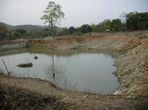 その前日の午後、私が明るいうちに鉱滓池に近づくのはまずいとのことで、私は彼の家の近くにある小さな掘ったて小屋の草を編んだベッドで休んでいた。横にはため池があり、女性たちは食器を洗ったり、洗濯をしたり、水浴をしたりしている。子どもたちは泳いで遊び、池の上から石を投げたりする子もいる。牛もやってきて、水浴び。犬は何気なくやってきて、私の隣に寝そべった。風が爽やかに流れ、雲もゆったりと流れていく。何もかもが自然に溶け込むような生活がそこにあった。
